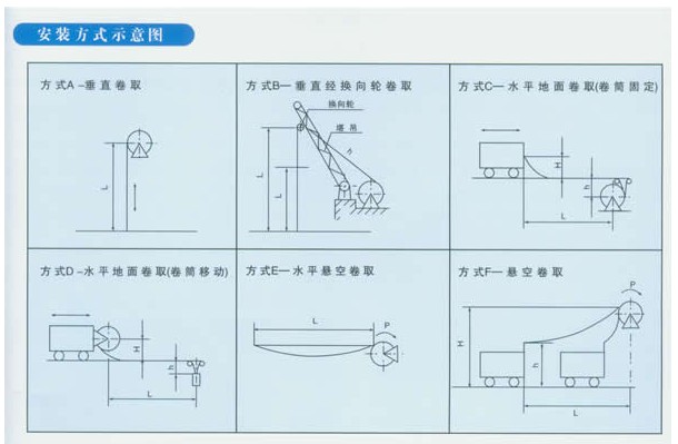 8、電動式卷筒結(jié)構(gòu)形式以懸臂式為主(一般不標注)。