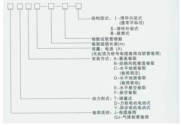 6、卷筒上線纜的收、放方向在外形尺寸圖中已標明。特殊要求,訂貨時必須注明。